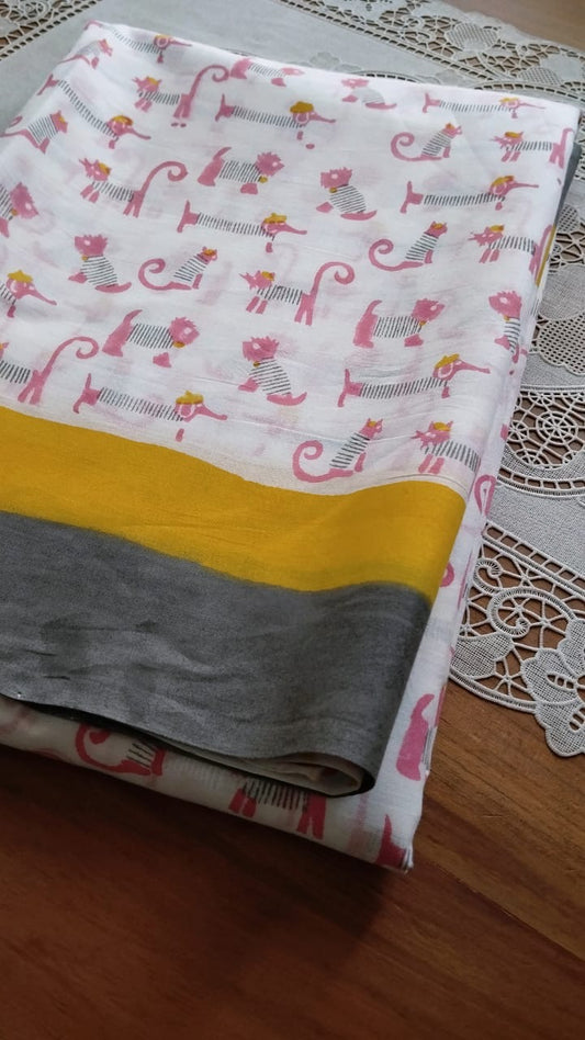 Soft & cute elephant printed premium mulmul cotton saree with blouse