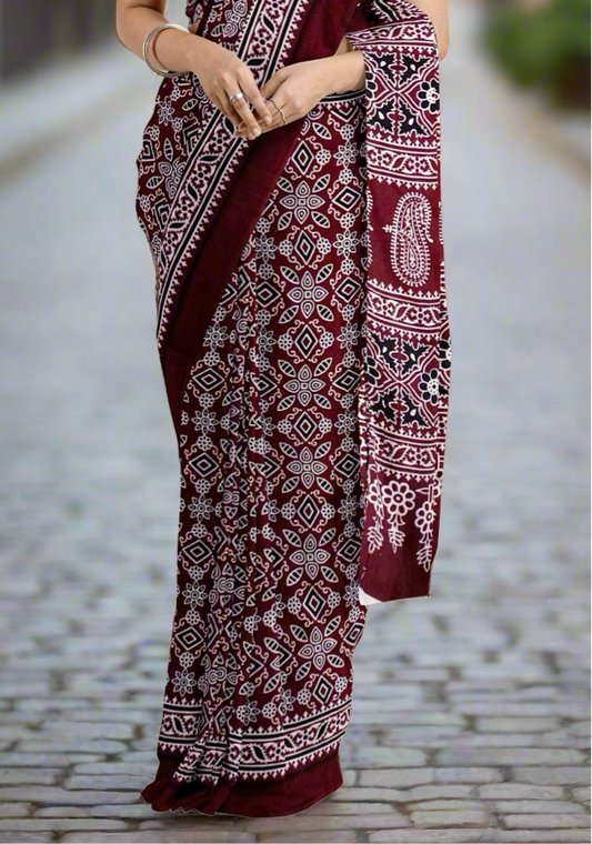 Pre-Order Bagru Block Print Cotton mulmul Sarees With Running Blouse
