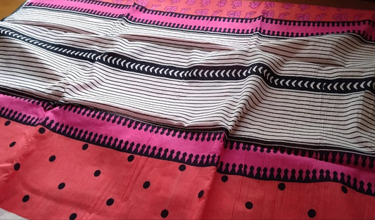Soft premium hand dyed & hand printed bagru mulmul cotton saree with blouse