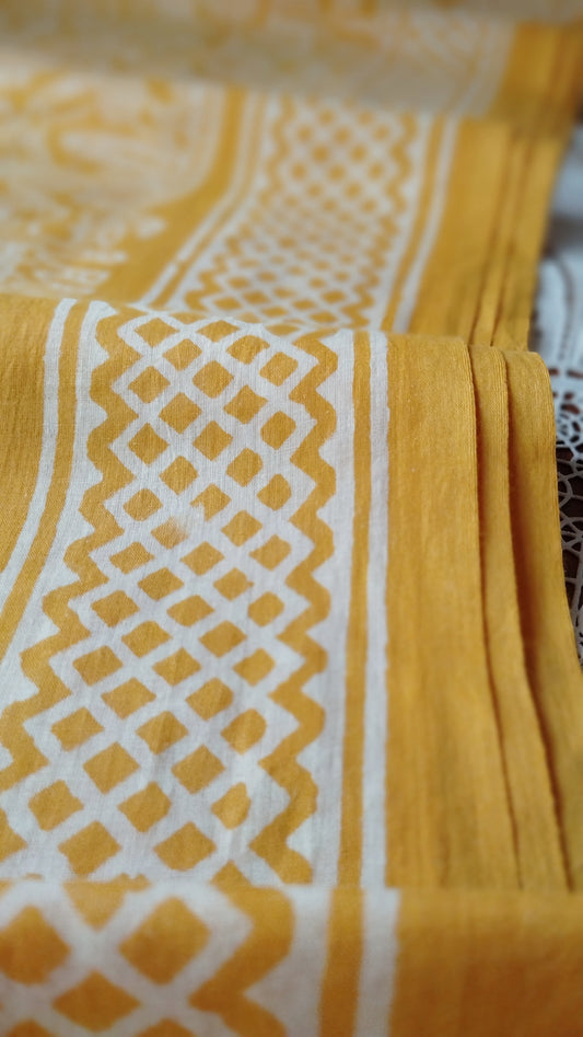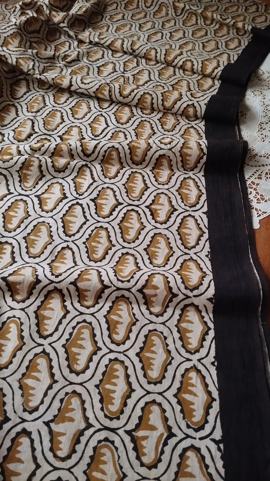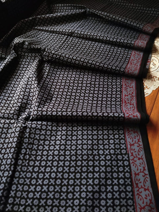 Soft premium hand dyed & hand printed bagru mulmul cotton saree with blouse