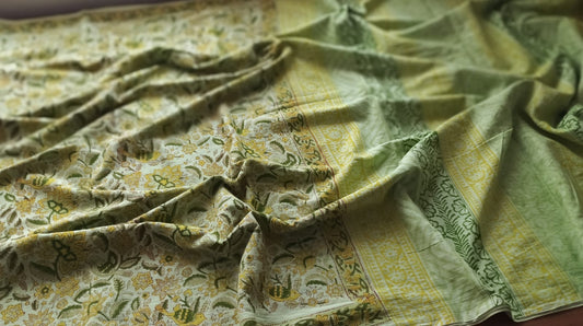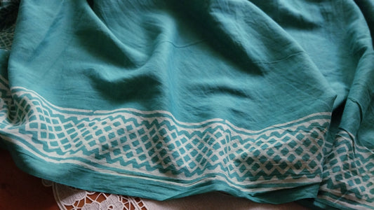 Soft hand printed premium teal green mulmul cotton saree with blouse