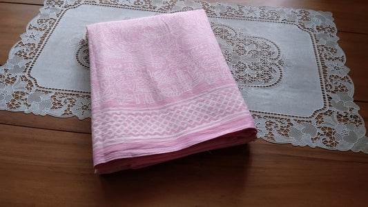 Soft hand printed premium Pink mulmul cotton saree withOUT blouse