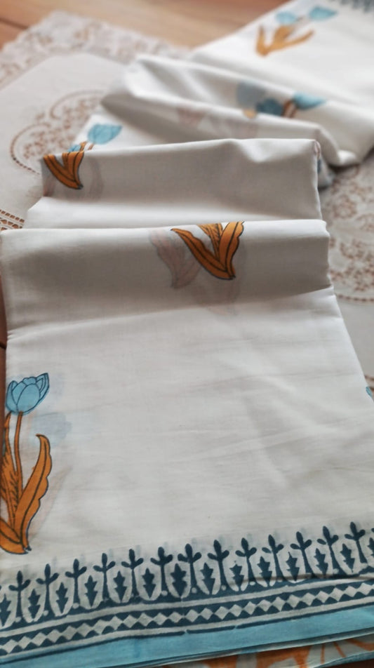 Soft hand printed premium mulmul cotton saree with blouse immediate shipment