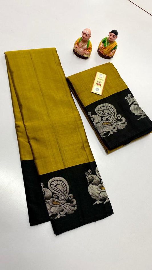 Pure Kanchipuram traditional soft silk handloom saree : Pretty peacock border