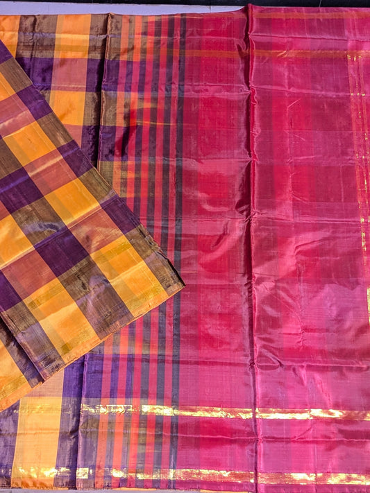 Beautiful kanchi border Banapith sarees with contrast pallu and running blouse