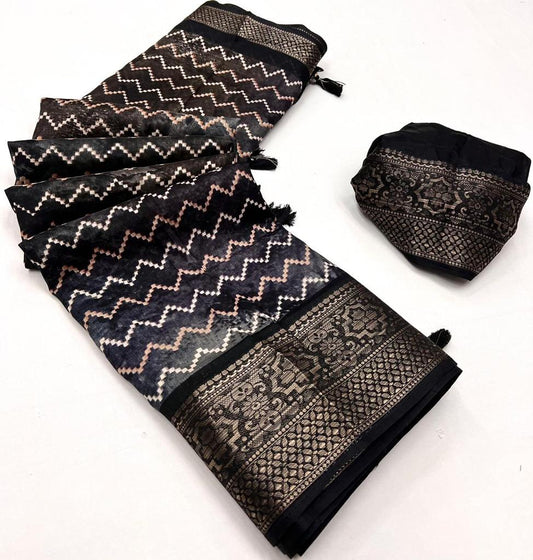 Soft Cotton Shibori Mill Print And Jaquard Weaving Border with Running Blouse