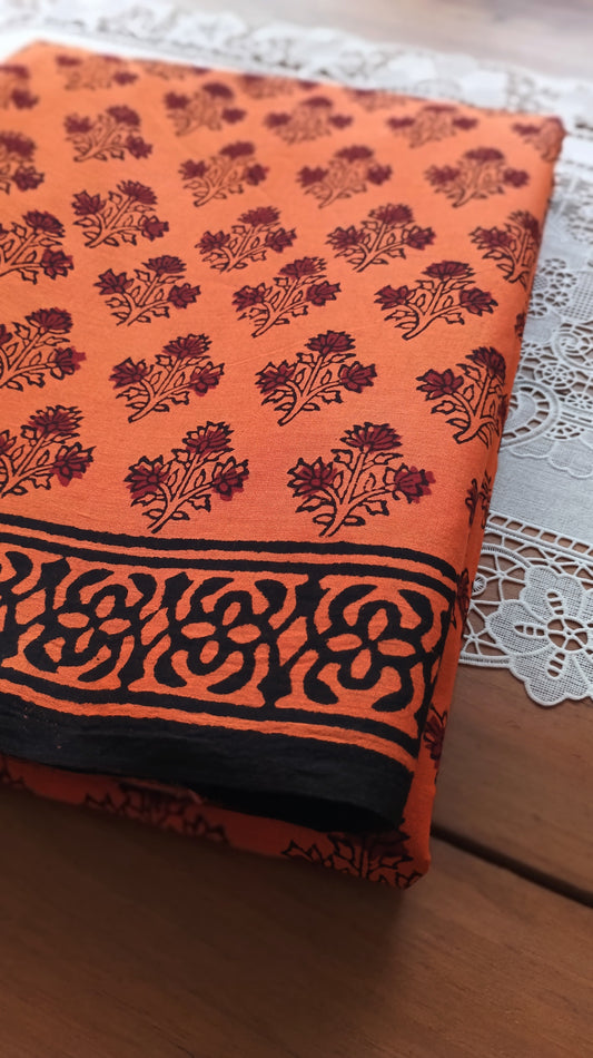 Soft premium hand dyed & hand printed bagru mulmul cotton saree with blouse