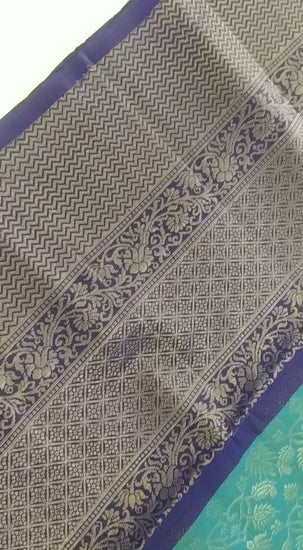 Sea Green and Blue Gorgeous Soft Silk Saree