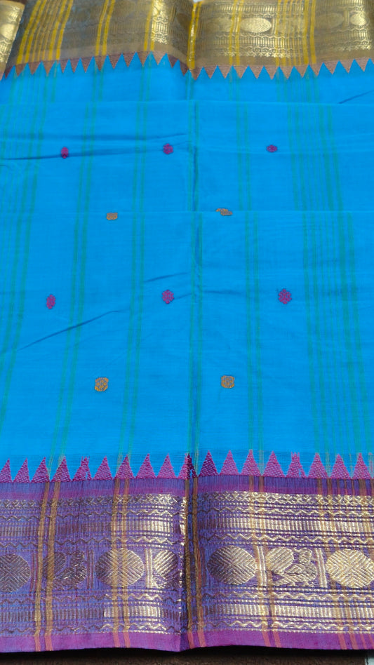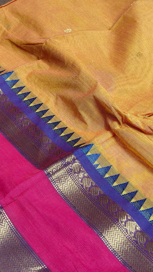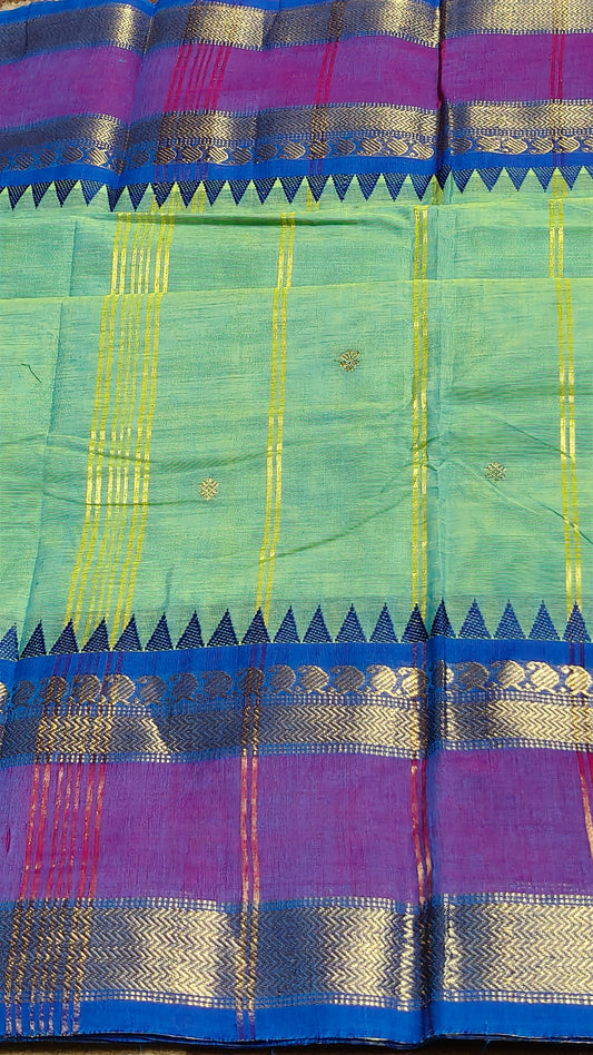 This collection of handloom , linen & cotton sarees has Chettinad cotton, Gadwal Cotton, Narayanpet cotton, Kerala cotton, and more from different regions of India. It is characterised by its silk-like brocade border, contrasting pallu and body colours with intricate designs.