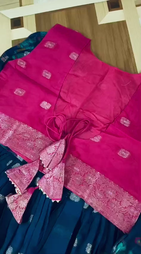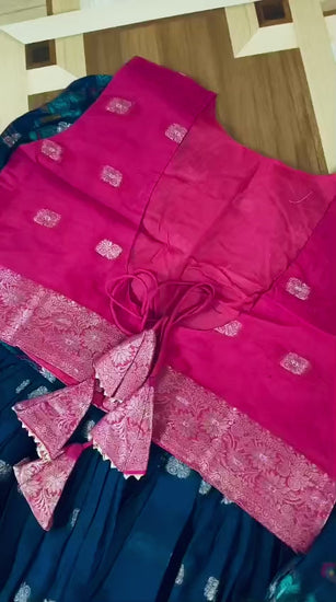 Tanira blue with pink fully stitched Kalamkari Print With Border gown size 38 to 40 : ready for dispatch